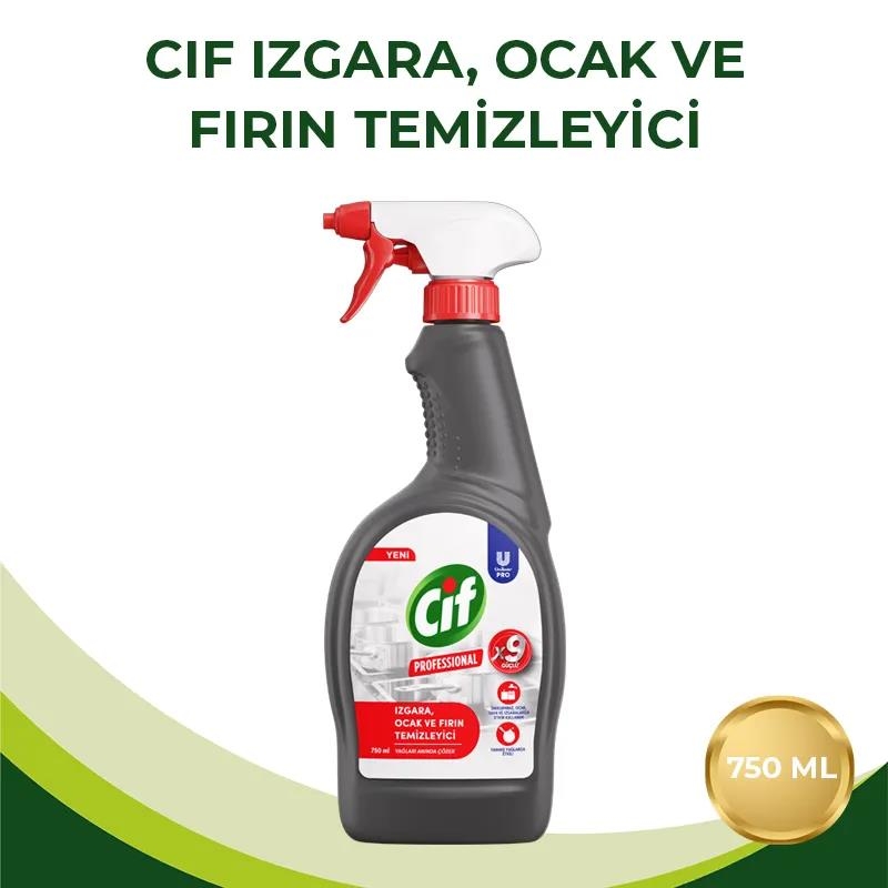 Sprey başlığı sayesinde kullanımı son derece pratik olup doğrudan kirli yüzeye uygulanabilir, birkaç dakika bekletildikten sonra sünger veya bez yardımıyla temizlenerek bol su ile durulanır. Temizlik sonrası yüzeylerde hijyenik bir parlaklık bırakan Cif Professional Fırın, Izgara ve Ocak Temizleyici, mutfaklardaki yağlanmalara karşı etkili ve hızlı bir çözüm sunarak temizlik işlemini zahmetsiz hale getirir.
