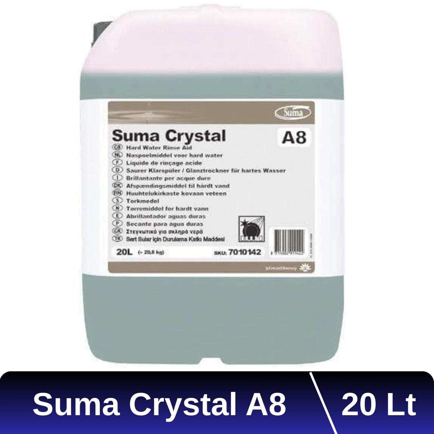 • Suma Crystal A8 konsantre, asidik bir bulaşık parlatıcısıdır. Geniş bir aralıkta yer alan bulaşık makineleri için formüle edilmiştir.
