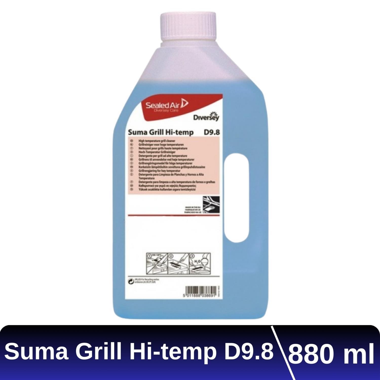 Diversey Suma Grill Hi-Temp D9.8 880 Ml, endüstriyel mutfaklarda operasyonun durmasına gerek kalmadan, yüksek sıcaklıktaki yüzeylerde kullanılabilen devrim niteliğinde bir ağır yağ çözücüdür.