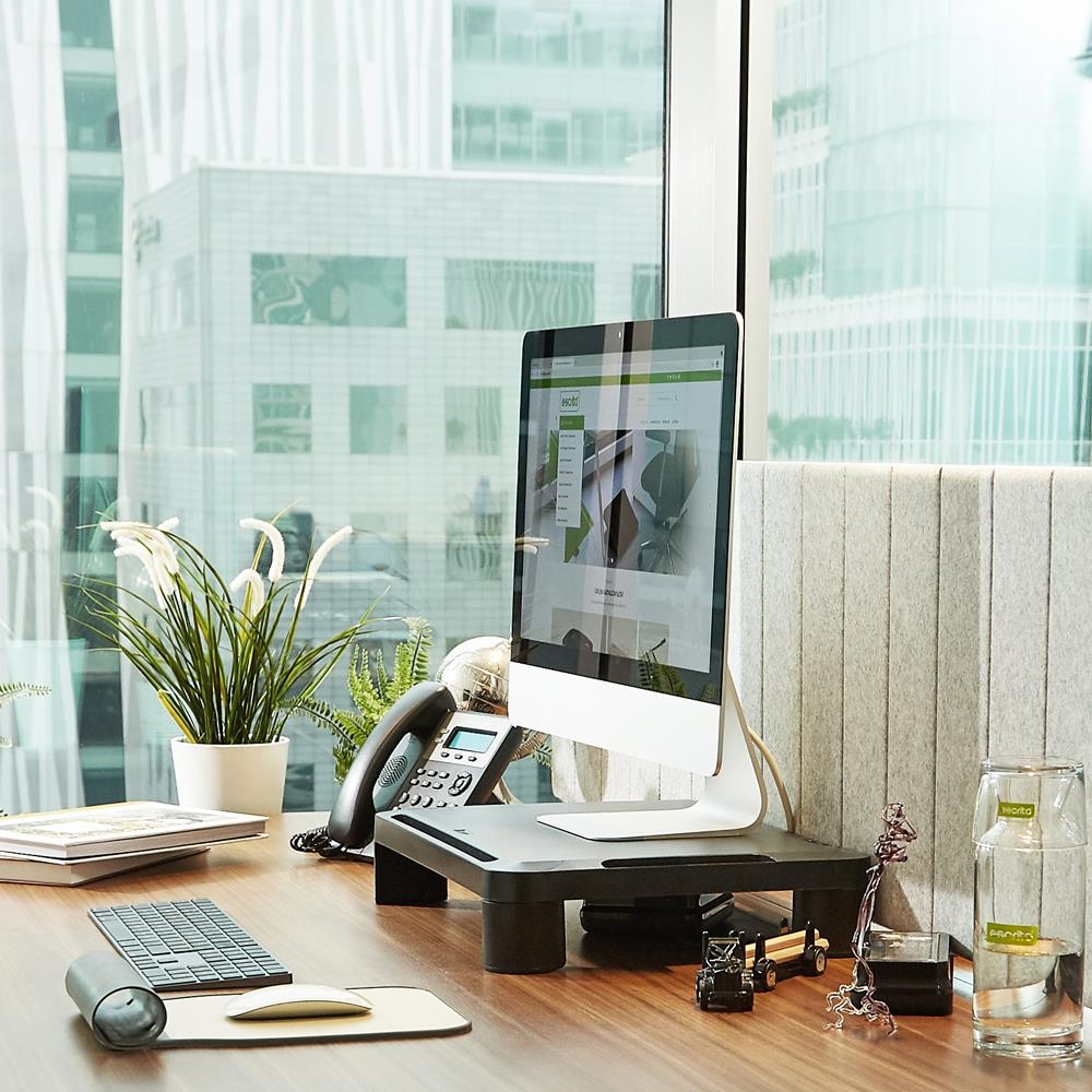 Escrito® Monitör Yükseltici sağlıklı bir duruş sağlamak ve üretkenliği artırmak için monitörünüzü en iyi görüntüleme yüksekliğine konumlandırır.