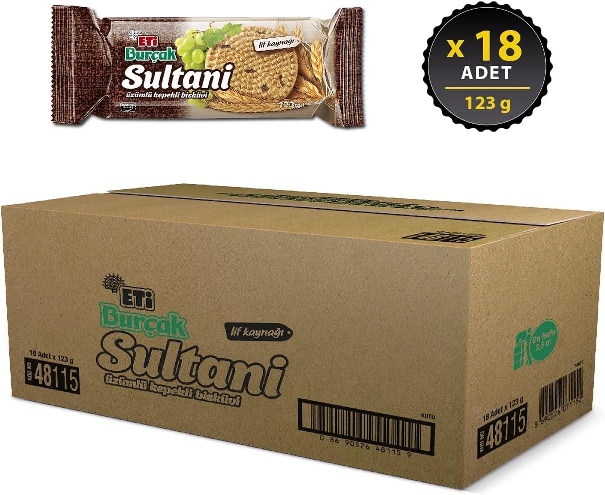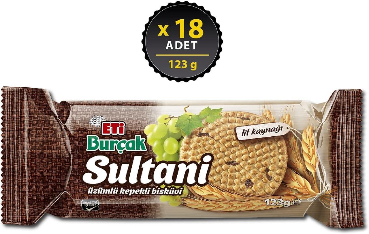 Eti Burçak Sultani Üzümlü Kepekli Bisküvi 123 Gr 18 Adet