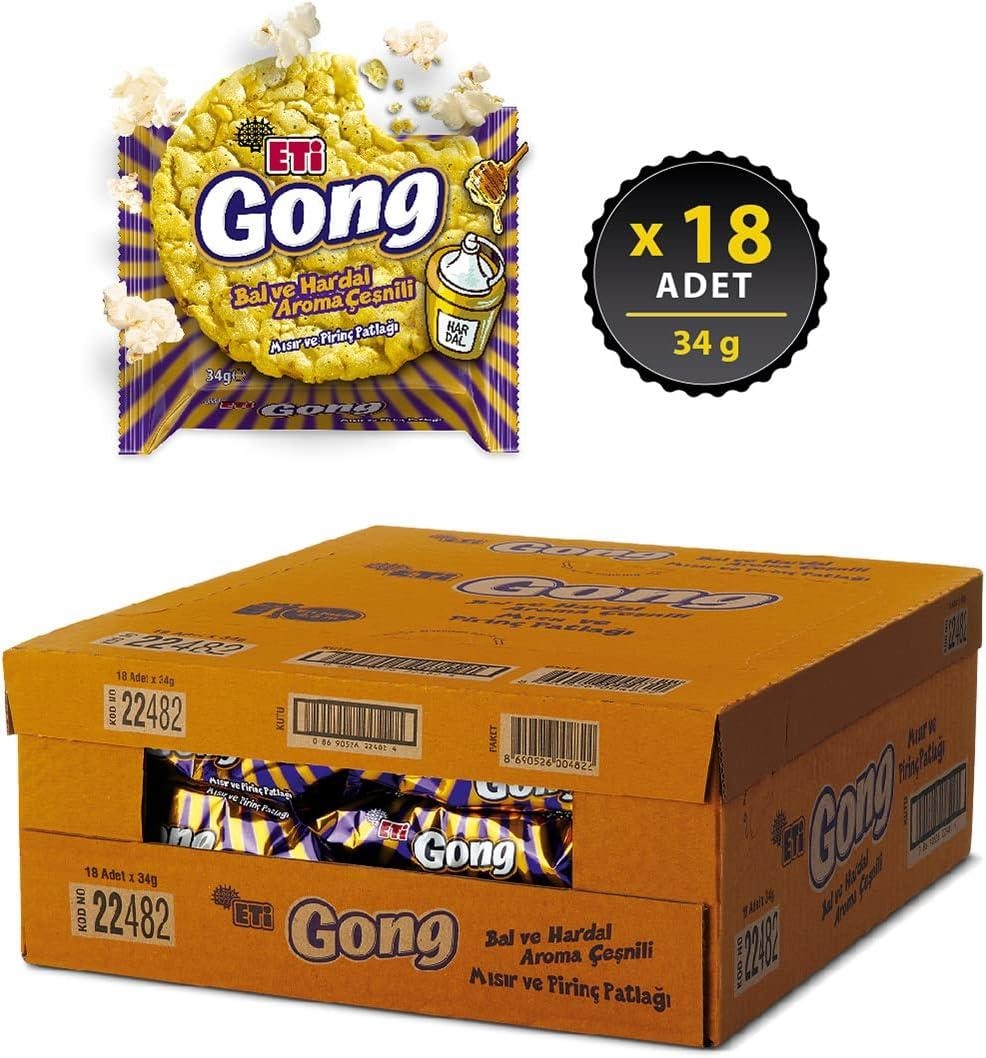 Eti Gong Bal ve Hardal Aroma Çeşnili Mısır ve Pirinç Patlağı 34 Gr 18 Adet