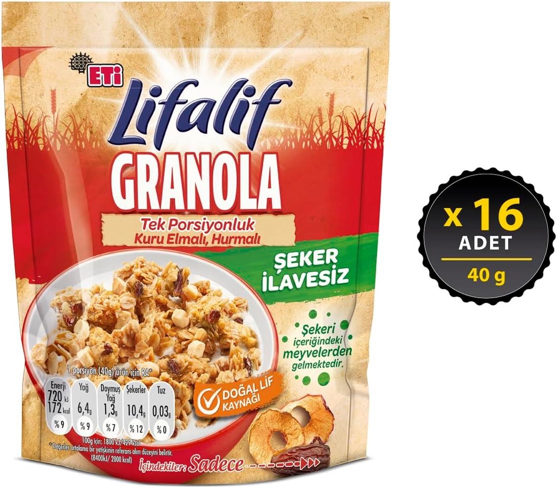 Eti Lifalif Kuru Elmalı Granola 40 Gr 16 Adet
