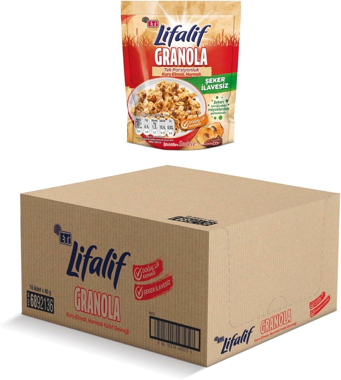 Eti Lifalif Kuru Elmalı Granola 40 Gr 16 Adet ürününü Atıştırmalık Barlar kategorisinden uygun fiyat ve hızlı teslimat seçeneği ile mercankurumsal.com'dan satın alabilirsiniz. Tüm Özellikler