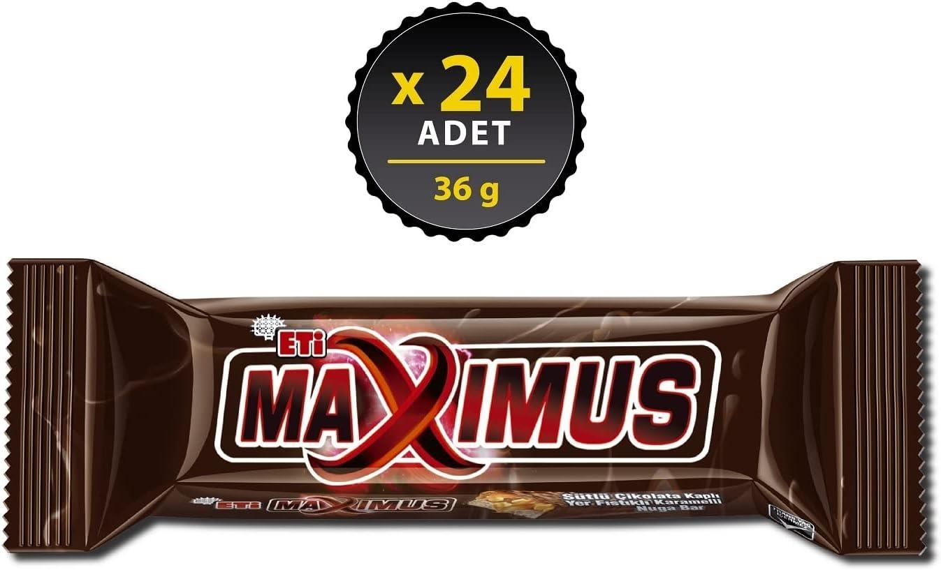 Eti Maximus Sütlü Çikolata Kaplı Karamelli Yer Fıstıklı Nuga Bar 36 Gr 24 Adet