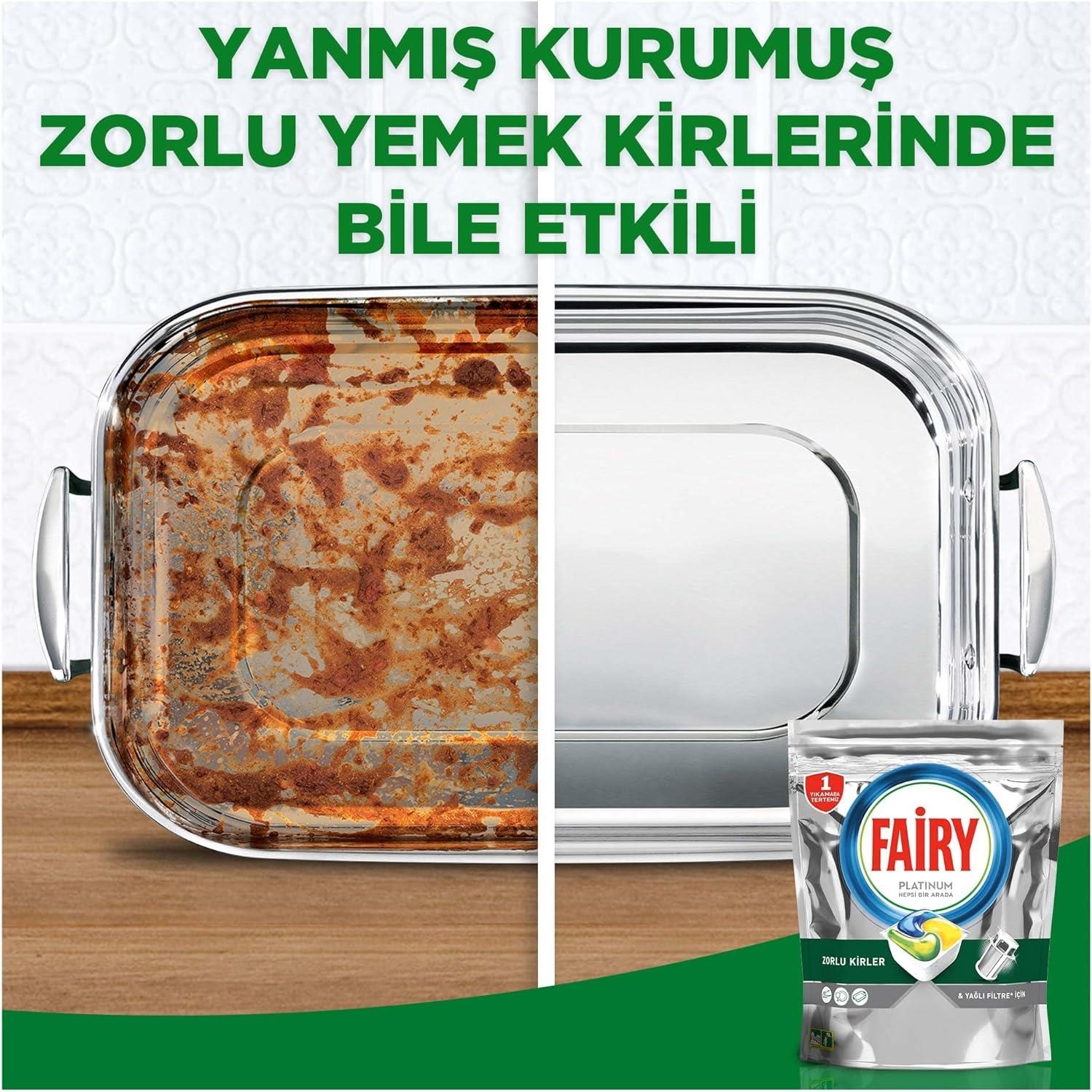 • Fairy Platinum tabletler zorlu yemek kirlerinde ilk yıkamada bile etkili
