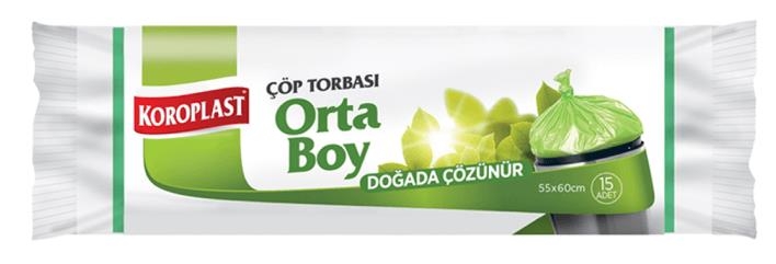 Koroplast Doğada Çözünür Orta Boy Çöp Torbası 55x60 Cm 15 Li