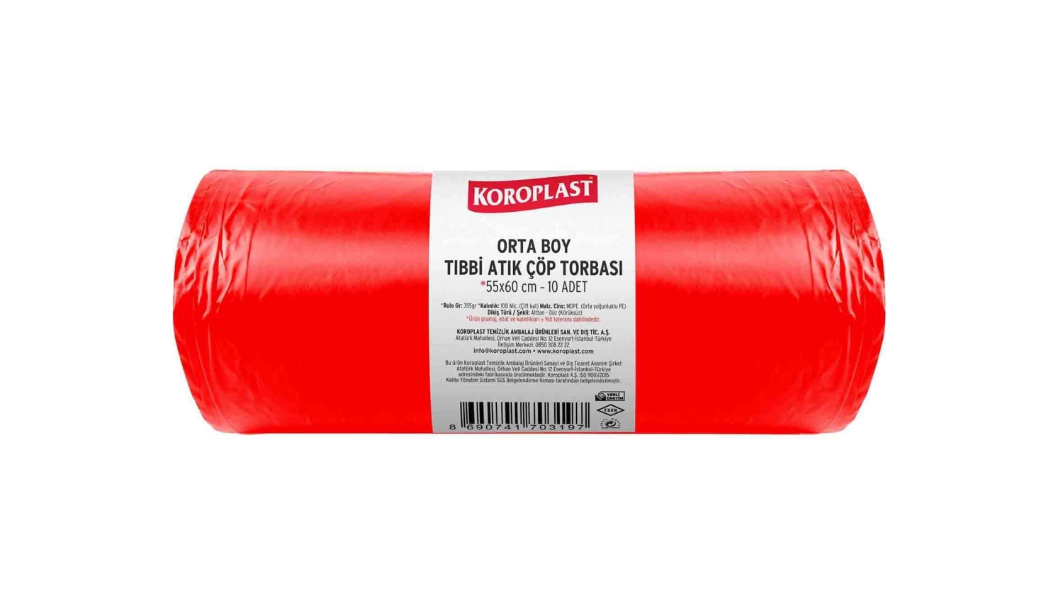 Koroplast Tıbbi Atık Baskılı Çöp Torbası Orta 55x60 Cm 355 Gr 10 Lu 20 Rulo