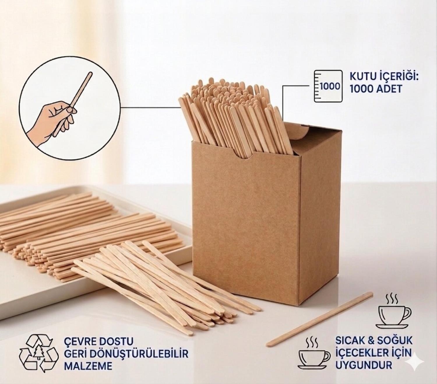 • Tahta Karıştırıcı veya ahşap karıştırıcı kavak ağacından üretilmiştir. Tek kullanımlık plastik çay kahve karıştırıcılarına doğa dostu alternatiftir.