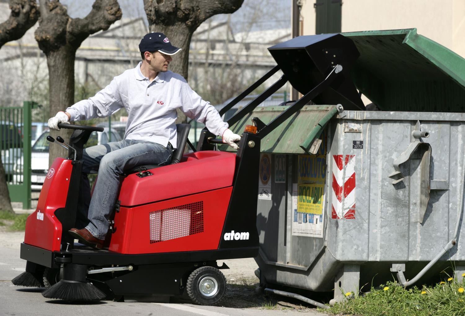 ATOM.3, küçük ve orta ölçekli iç ve dış mekanları hızlı bir şekilde temizlemek için kompakt bir süpürgedir. Konforu ve araba gibi doğal sürüşü sayesinde kullananlar anında rahatlar. Güvenilir ve kullanımı kolay olan ATOM.3, verimli ve uygun fiyatlı temizlik için ideal bir çözümdür. TOM SA, RCM serisindeki en küçük binilebilir süpürgedir ve operatörün atık haznesini zahmetsizce boşaltmasını sağlayan hidrolik sistemle donatılmıştır.