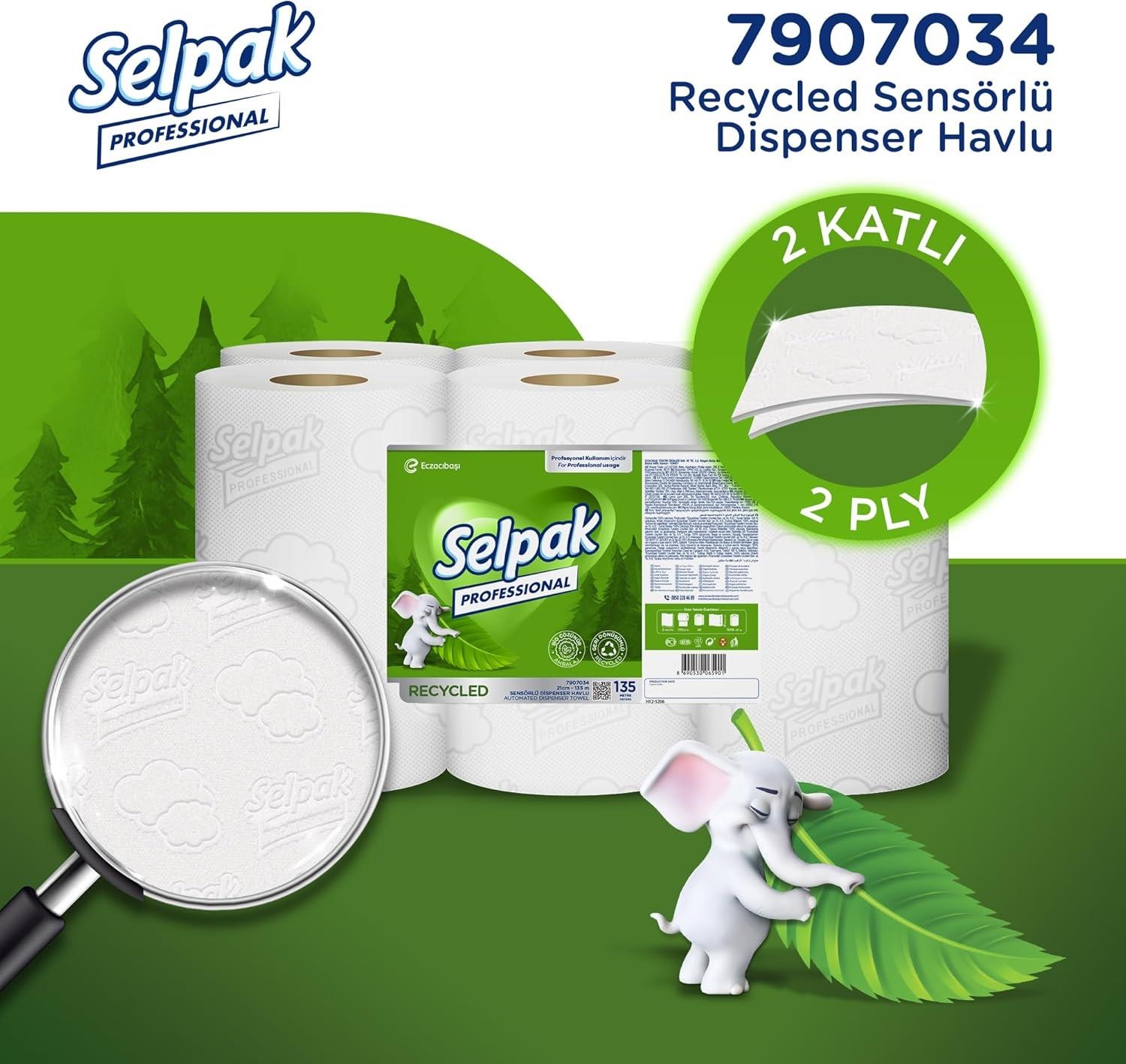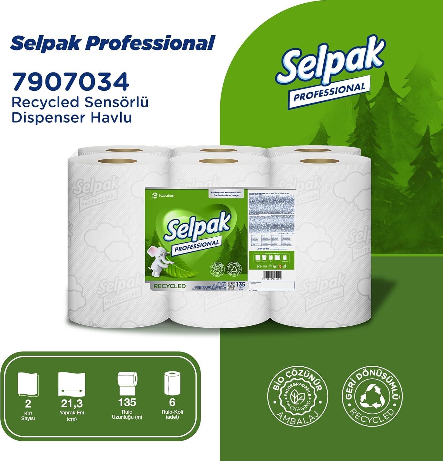 Selpak Professional Recycled Sensörlü Dispenser Havlu 21 Cm 135 Metre 6 Lı