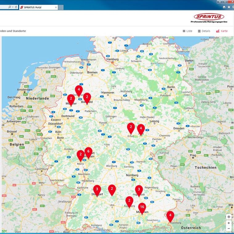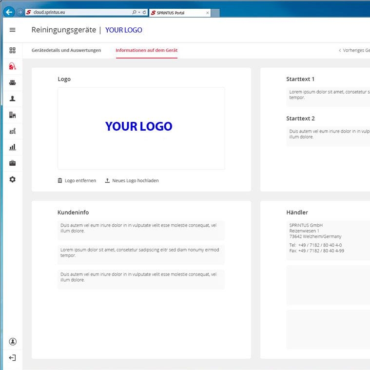 İnteraktif dokunmatik ekran, SPRiNTUS APP kullanılarak logonuzla özelleştirilebilir. Bu sayede yeni müşteriler kazanılabilir ve kurumsal tasarım uyarlanıp vurgulanabilir. Dil seçimi (DE, ENG, FR, IT) yapılabilir. Arıza durumunda ekranda çözüm önerileri gösterilir. Entegre Bluetooth arayüzüyle birlikte, çalışma saatleri, günlük çalışma süresi, konum verileri gibi önemli cihaz verileri bulut tabanlı filo yönetimine aktarılabilir ve yaygın olarak kullanılan ERP sistemlerine bağlanabilir. Çalışma süreleri tek bir düğmeye dokunarak kontrol edilebilir ve özellik hesaplamaları uyarlanabilir. Ekranda, özellik, kullanıcı ve müşteri verileri gibi ek veriler saklanabilir ve görüntülenebilir. Kullanıcı, yedek parça çizimlerini, kullanım kılavuzlarını, veri sayfalarını ve diğer cihaz verilerini istediği zaman görüntüleyebilir.