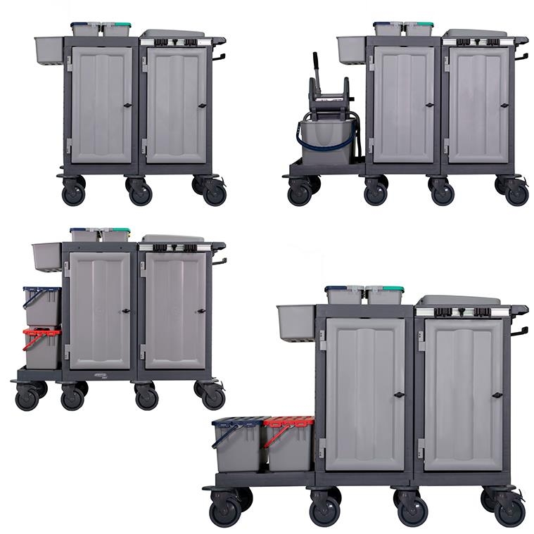 4 versiyonda genişletilebilir, kilitlenebilir temizlik arabası.