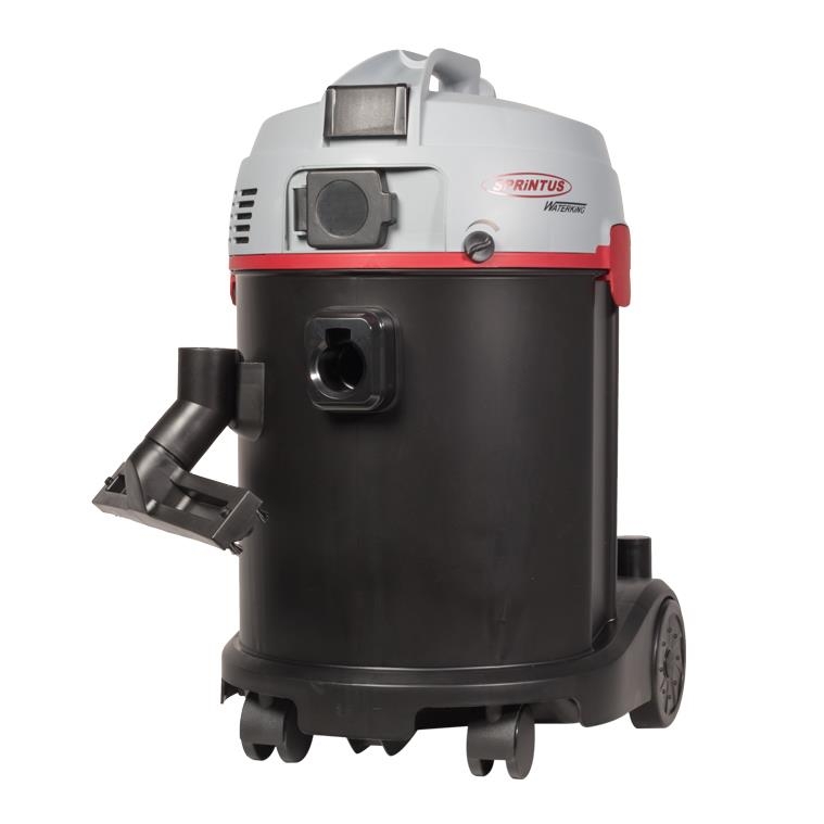 30 litre sınıfındaki elektrikli süpürgeler arasında "Waterking", temizlik tesisleri için en uygun olanıdır. Son derece yüksek performans (70 L/sn'de 260 mbar emiş gücü). 360 mm genişliğindeki zemin başlığıyla birlikte kullanıldığında "Waterking", çok çeşitli yüzeylerde olağanüstü performans gösterir. Mekanik çıkış regülatörü sayesinde emiş gücü her türlü zemine uyarlanabilir. Entegre üfleme fonksiyonu sayesinde filtreler ve çalışma tezgahları temiz, ıslak yüzeyler ise kuru olarak üflenebilir. Hortum, güç kablosu ve aksesuarlar için cihaz üzerinde saklama alanı, hortum için park yeri ve ergonomik tutma yeri, optimum kullanım sağlar ve "Waterking"i profesyonel kullanıma uygun hale getirir. Başlıkta bulunan yüksek performanslı bir priz, diğer temizlik makinelerinin doğrudan elektrikli süpürge üzerinden kullanılmasına olanak tanır.