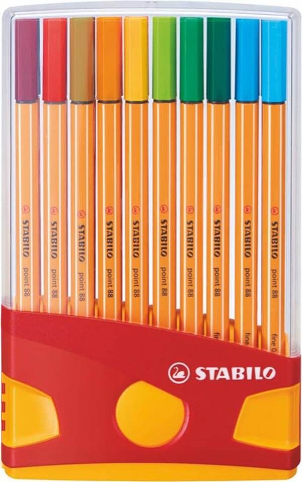 • STABILO Point 88 Mutfağı, öğrenciler ve okul çocukları için mükemmel bir yol arkadaşıdır. İlk olarak 1977 de sunulan bu ürün, kalitesi ve kalitesi sayesinde dünya üzerinde takdir edilmiştir. Avrupa'da en çok tercih keçeli kalemdir. STABILO point88'in ünlü altıgen şekli onu tutulması çok kolay hale getirir. Uzun bitme süresi sayesinde kazara bitirme konusunda endişelenmenize gerek yok.
