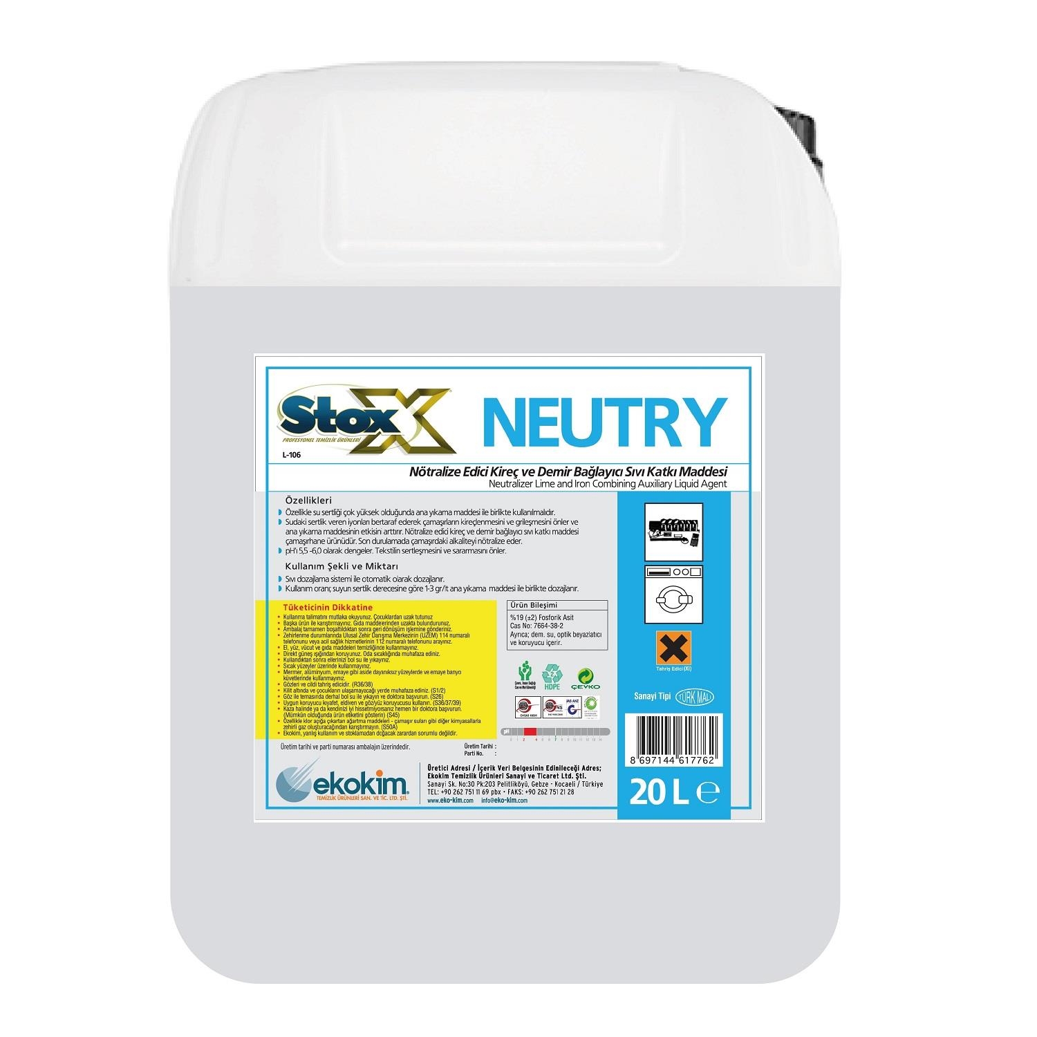 Stox Neutry Demir ve Kalsiyum Bağlayıcı 22 Kg ürününü Yardımcı Yıkama Katkıları kategorisinden uygun fiyat ve hızlı teslimat seçeneği ile mercankurumsal.com'dan satın alabilirsiniz. Tüm Özellikler