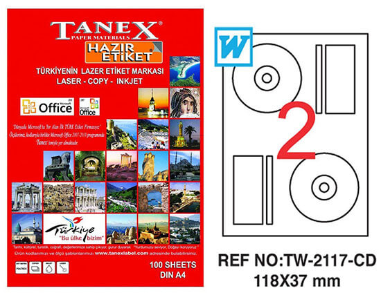 Tanex Lazer Etiket CD TW-2117 118x37 Mm