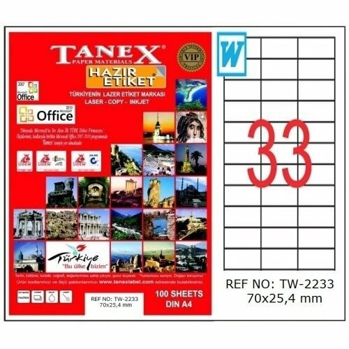 Tanex Lazer Etiket TW-2233 70x25.4 mm 100 Adet ürününü