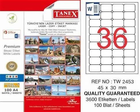 Tanex Lazer Etiket TW-2453 45x30 Mm